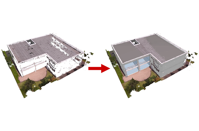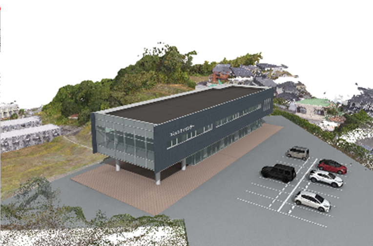 現況地形の点群データに計画建物を重ね合わせて、雰囲気を確認したい