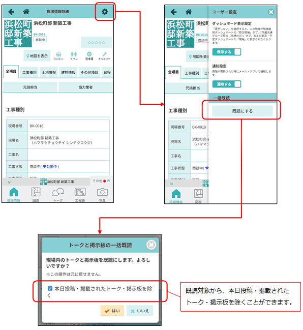 * 現場情報詳細画面にて、トークと掲示板を一括で既読にできるようになりました。
