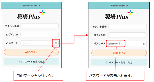 > 目のアイコンをクリックすることで、パスワードの表示/非表示を切り替えられます。