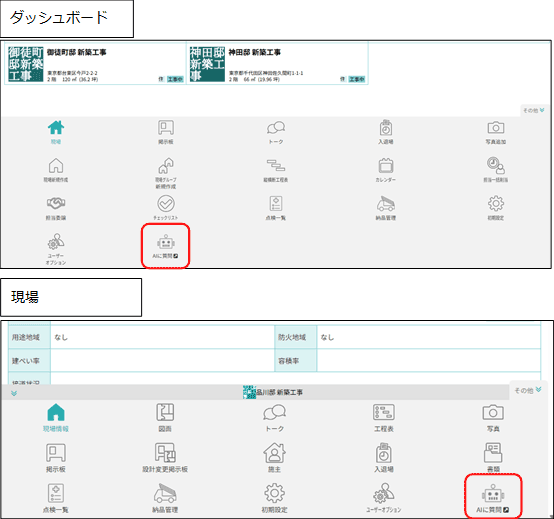 * ダッシュボード / 現場の機能アイコン一覧に「AIに質問」アイコンを追加しました。